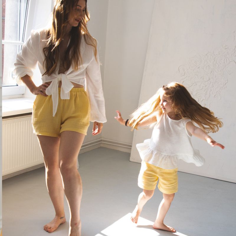 Muślinowe zestawy dla mamy i córki to nie tylko identyczne modele - choć i takie u nas znajdziesz. Ale możesz także postawić na wspólny kolor i wybrać ubrania najlepsze dla każdej z Was. Wspólny kolor i unikatowy splot muślinu to przepis na idealny, dopasowany do Was zestaw dla mamy i córki.